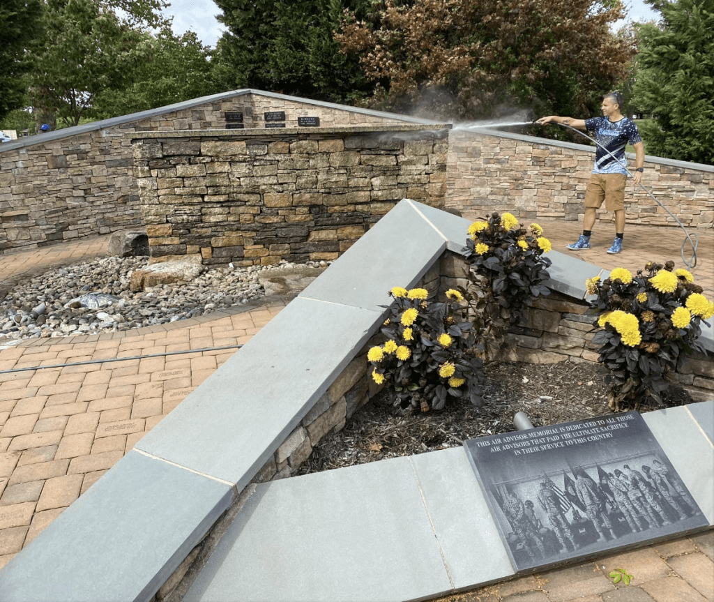 Joint Base McGuire-Dix-Lakehurst, New Jersey – Members of the Air Advisor Memorial Foundation dedicated sweat and hard work to rejuvenate the Air Advisor Memorial on JB MDL. With the elements taking a toll on the memorial, members worked together to weed, scrub, power-wash, place 16 bags of mulch, and lay 7 tons of stone to ensure that the memory of those Advisors whose names are on the wall can be properly honored. The team routinely employs volunteers from the local Mobility Support Advisory Squadron to assist in upkeep of the memorial multiple times annually, offering a chance for them to honor those Advisors who gave the ultimate sacrifice.
